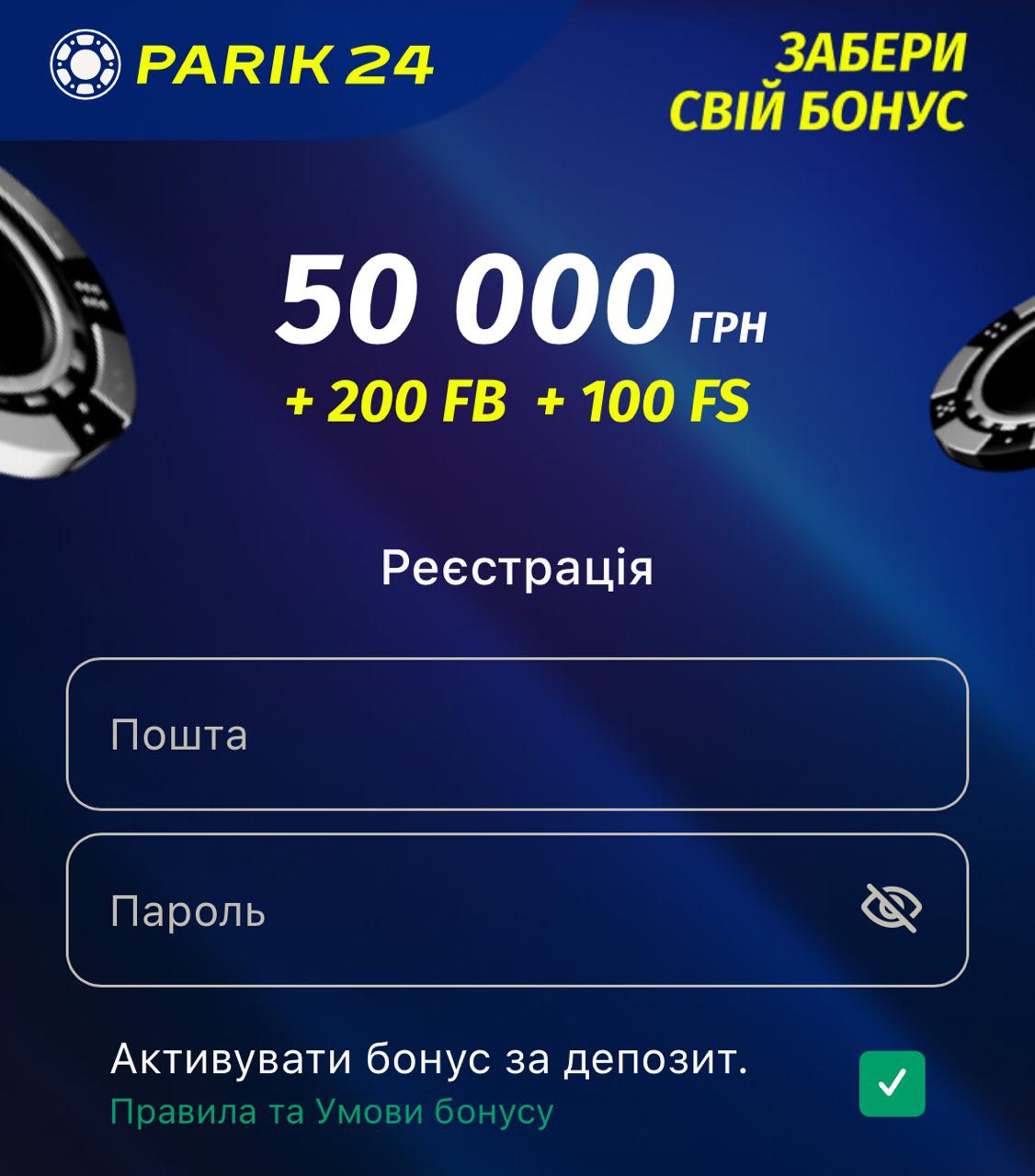 Українські гравці можуть зареєструватися в Парік24 всього за пару кліків, дотримуючись такого порядку дій: